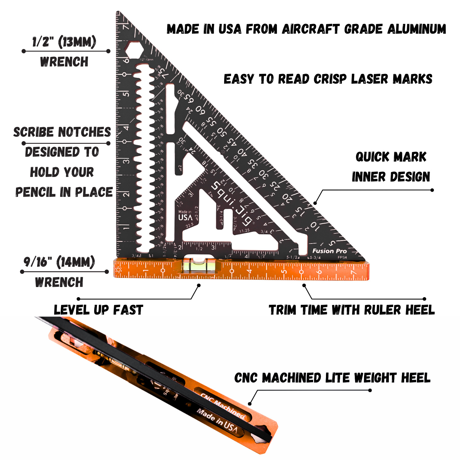 • Scribe notches designed to hold your pencil in place